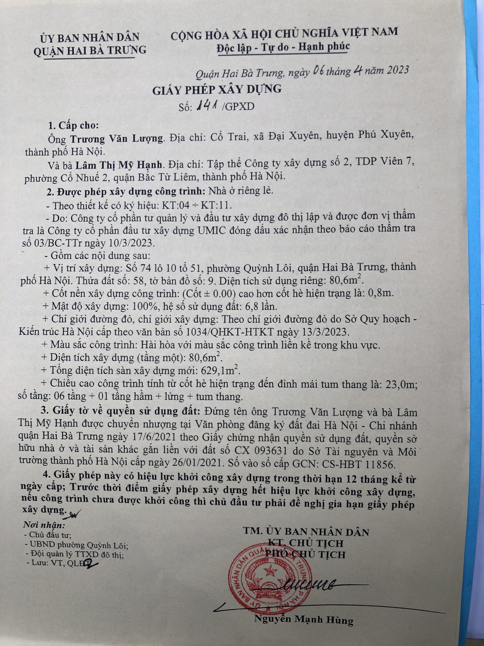 giấy phép xây dựng quận HAI BÀ TRƯNG