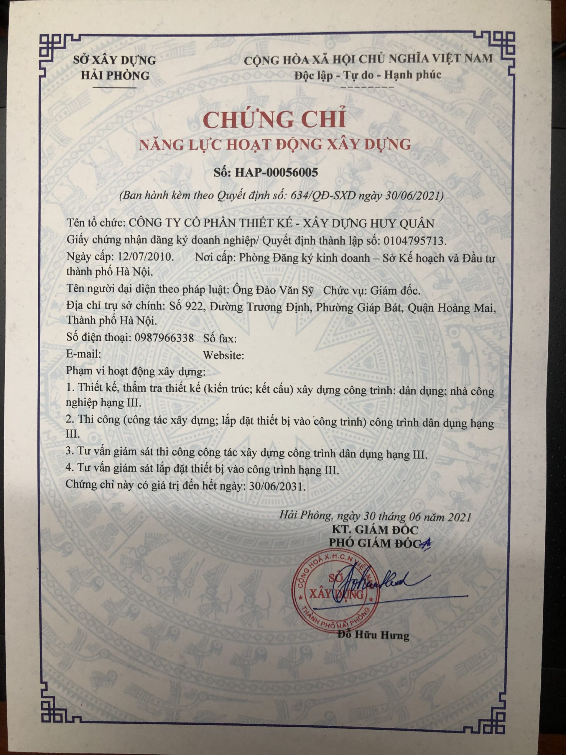 CÔNG TY CP THIẾT KẾ – XÂY DỰNG HUY QUÂN